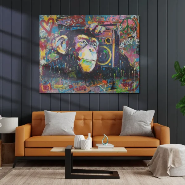 Monkey with a Boombox – Ready to Hang HD Canvas – Urban Street Art – Hip Hop Original Chimp Graffiti Art – Ready to Hang Art
