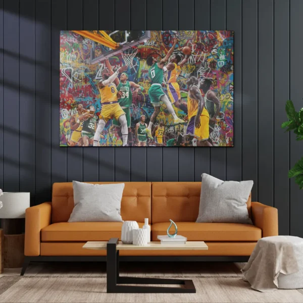 Celtics vs Lakers Fantasy Art – Ready to Hang HD Canvas – NBA Rivalry – Legends Original Basketball Rivalry Art – Ready to Hang Art