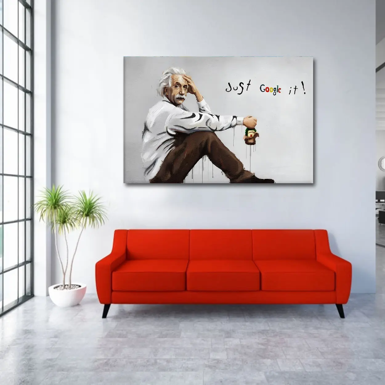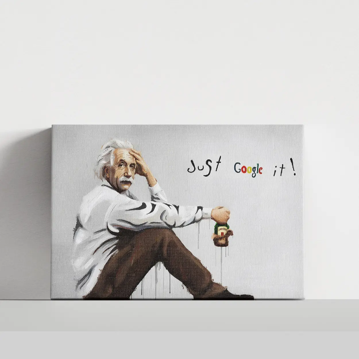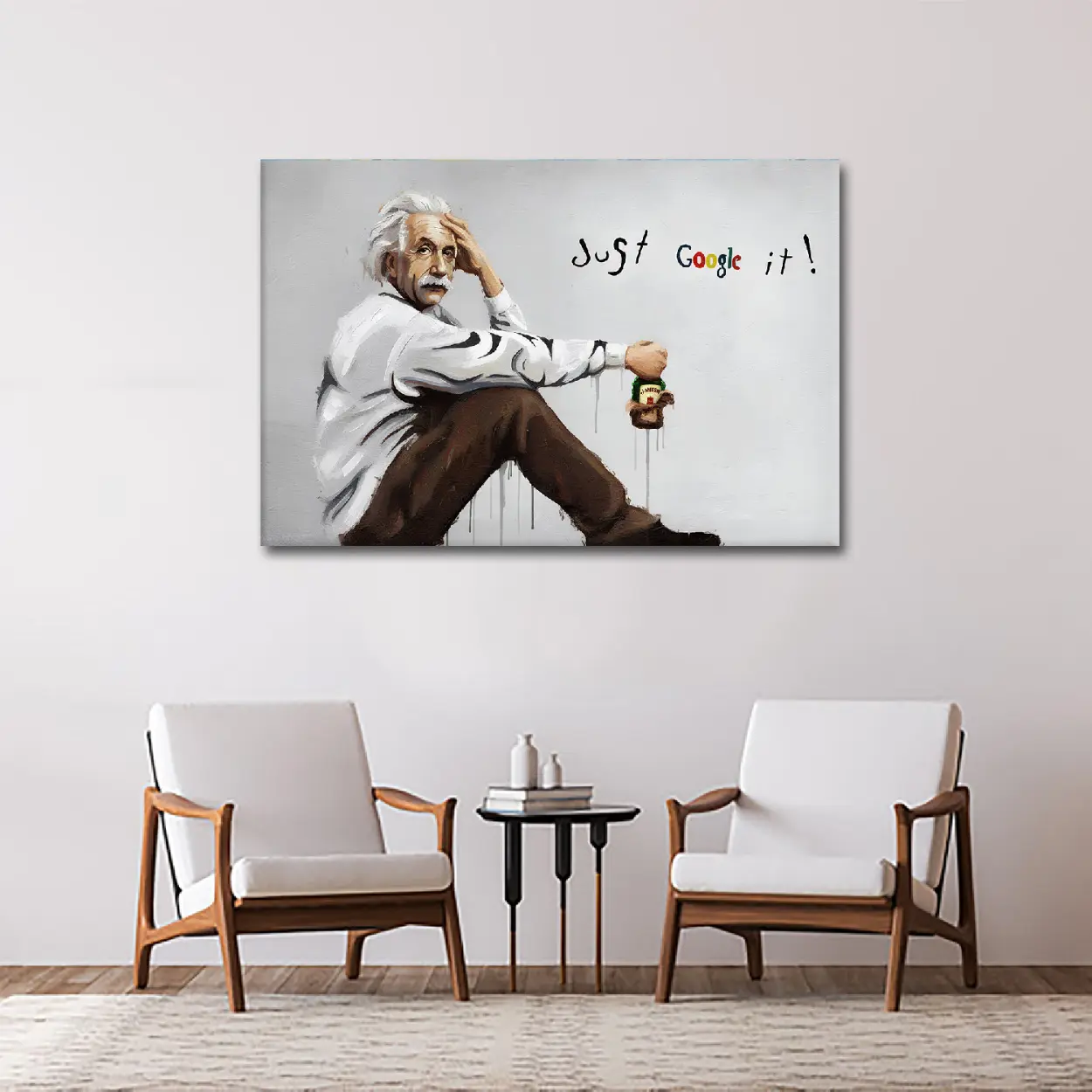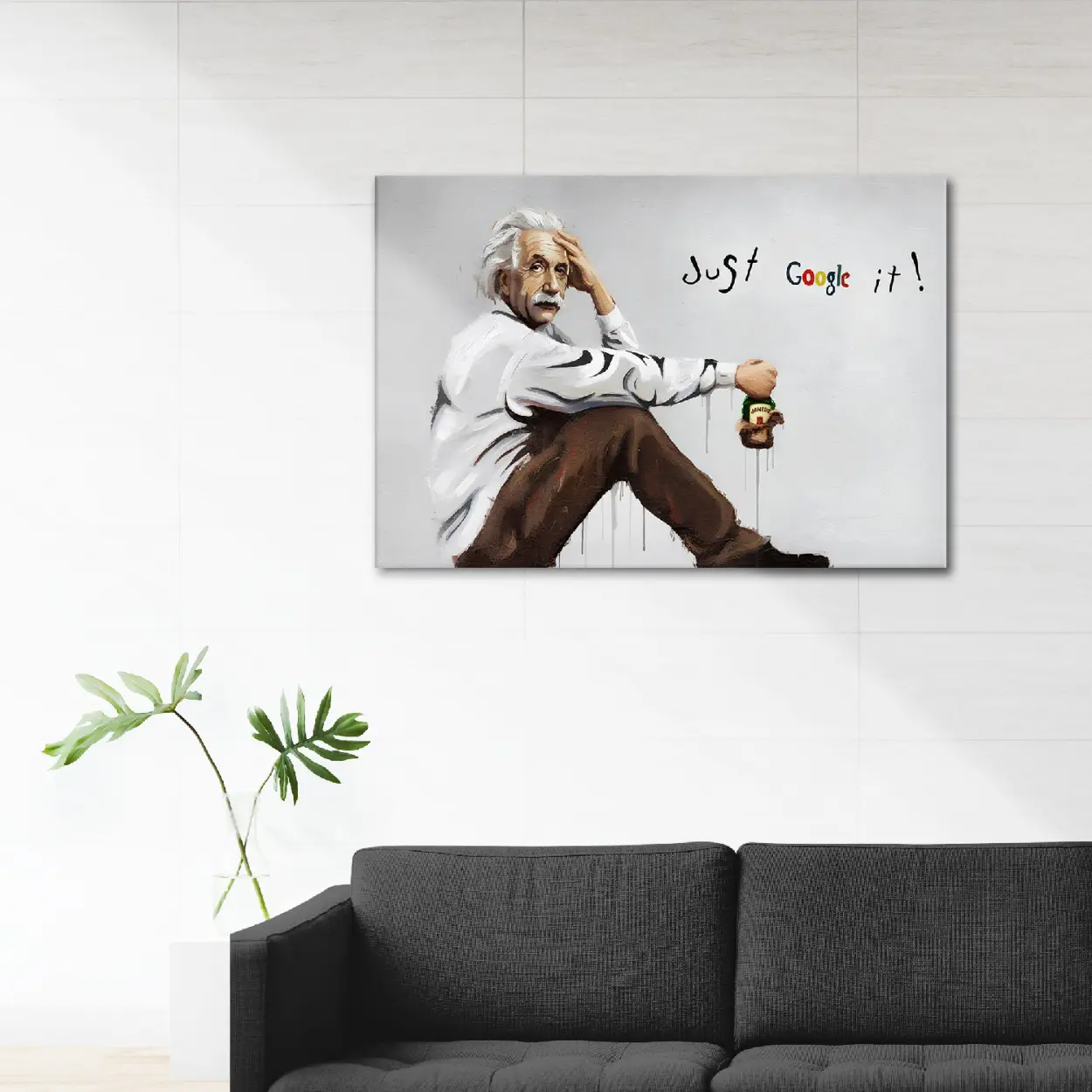 Albert Einstein Graffiti Canvas Art – Ready to Hang HD Canvas – Genius Icon Street Art Original Einstein Pop Art – “Just Google It” Modern Respin – Ready to Hang Art