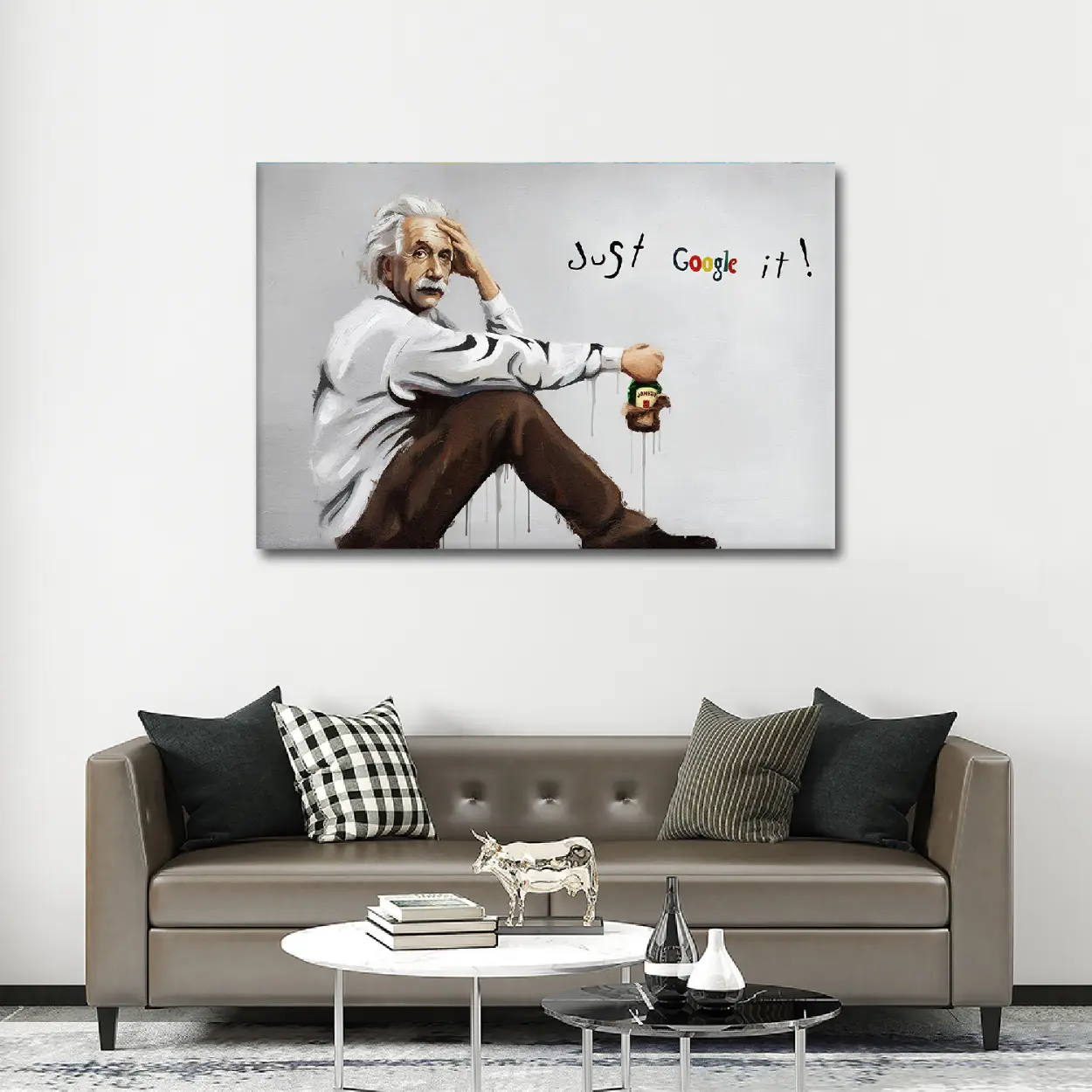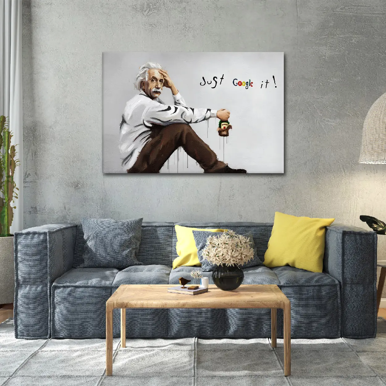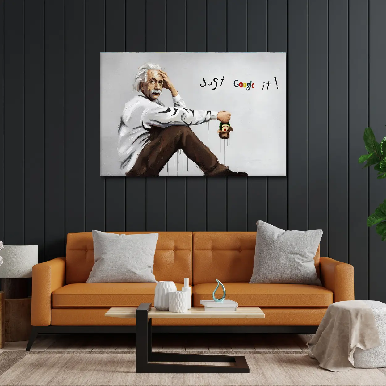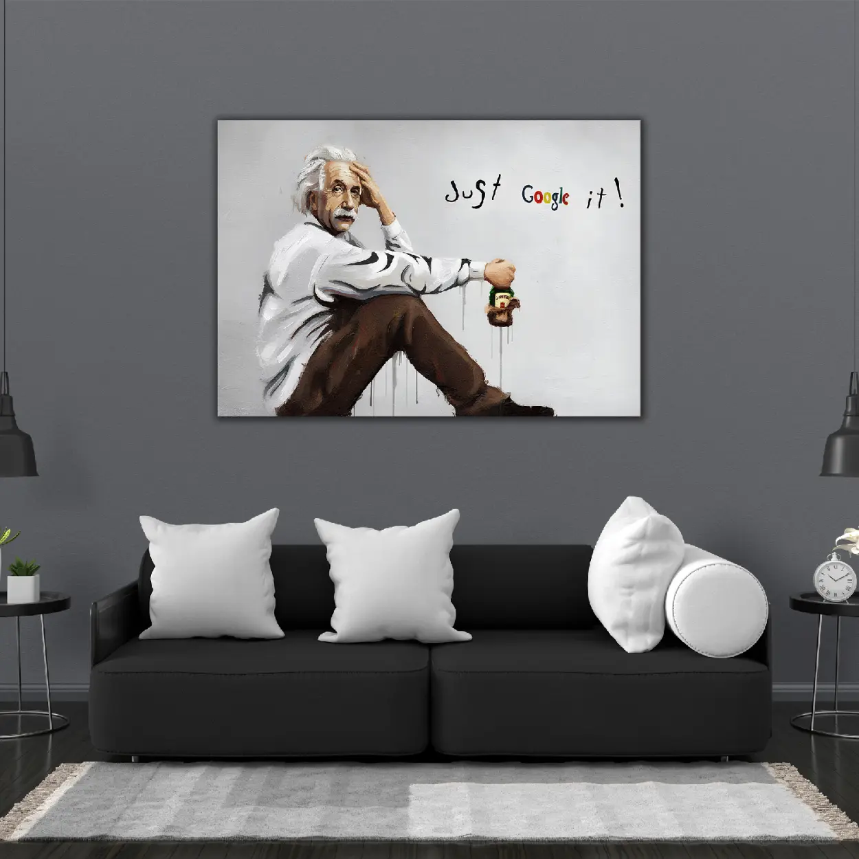 Albert Einstein Graffiti Canvas Art – Ready to Hang HD Canvas – Genius Icon Street Art Original Einstein Pop Art – “Just Google It” Modern Respin – Ready to Hang Art