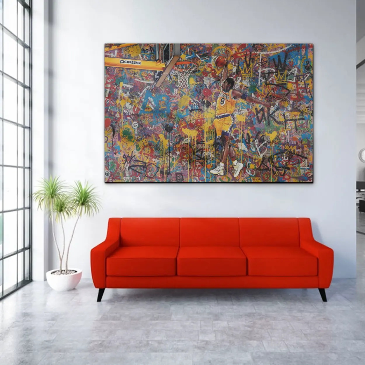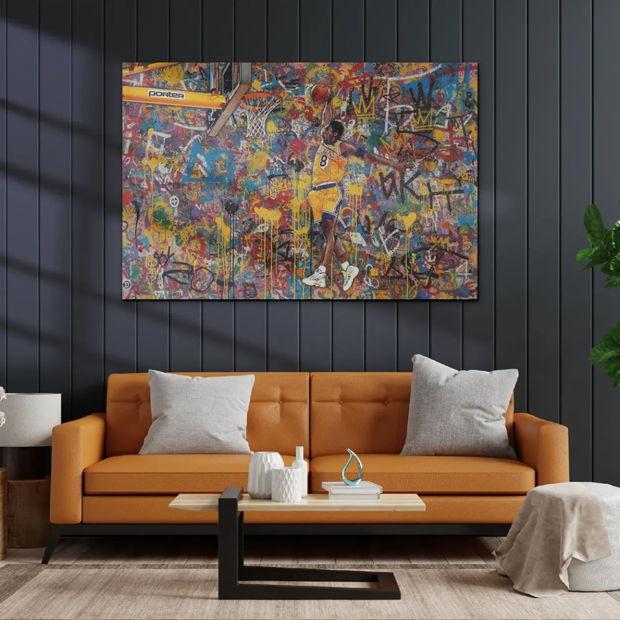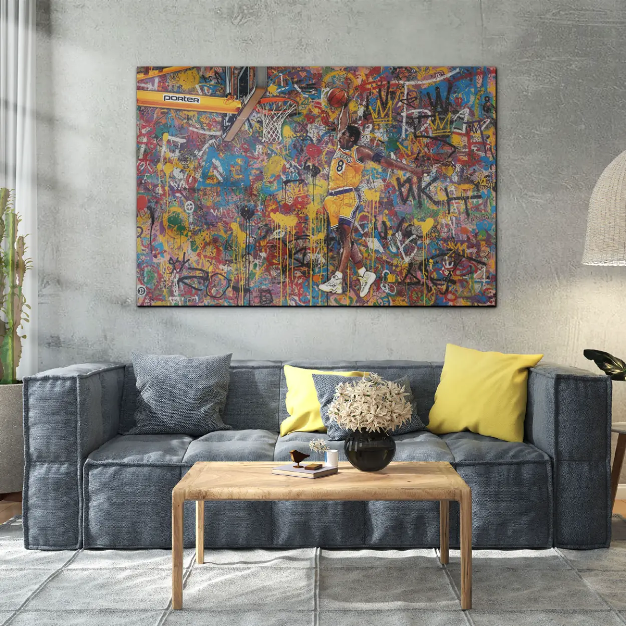 Perfect for basketball fans, Lakers enthusiasts, and modern sports-themed decor
