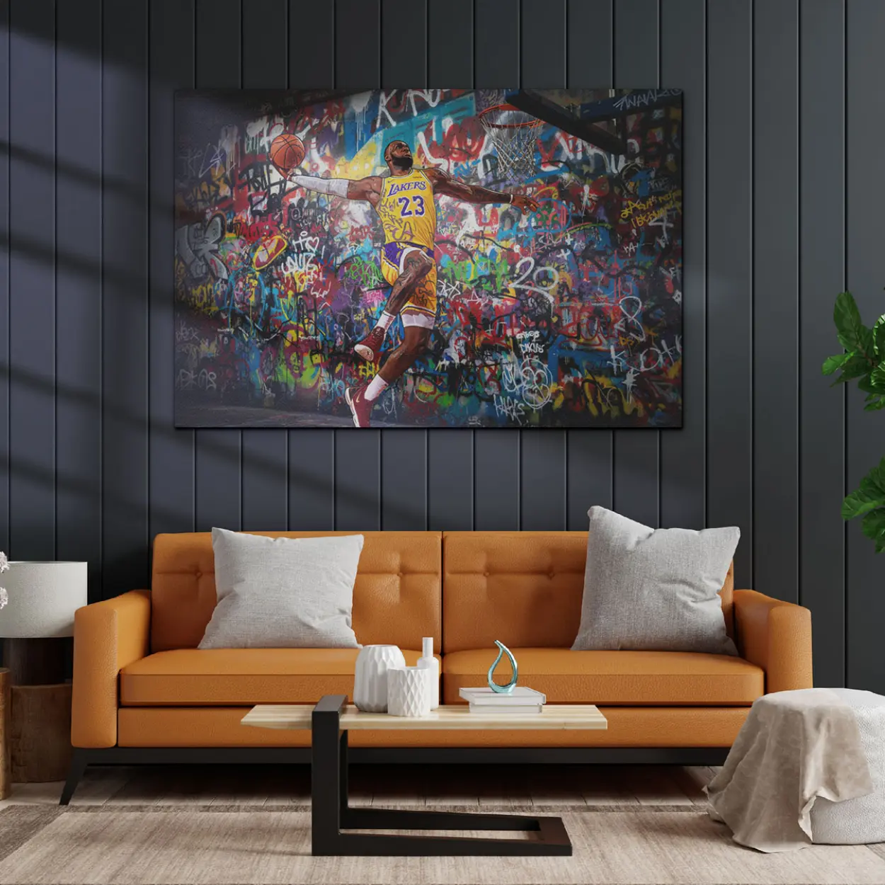 Perfect for basketball fans, Lakers enthusiasts, and modern sports-inspired decor.