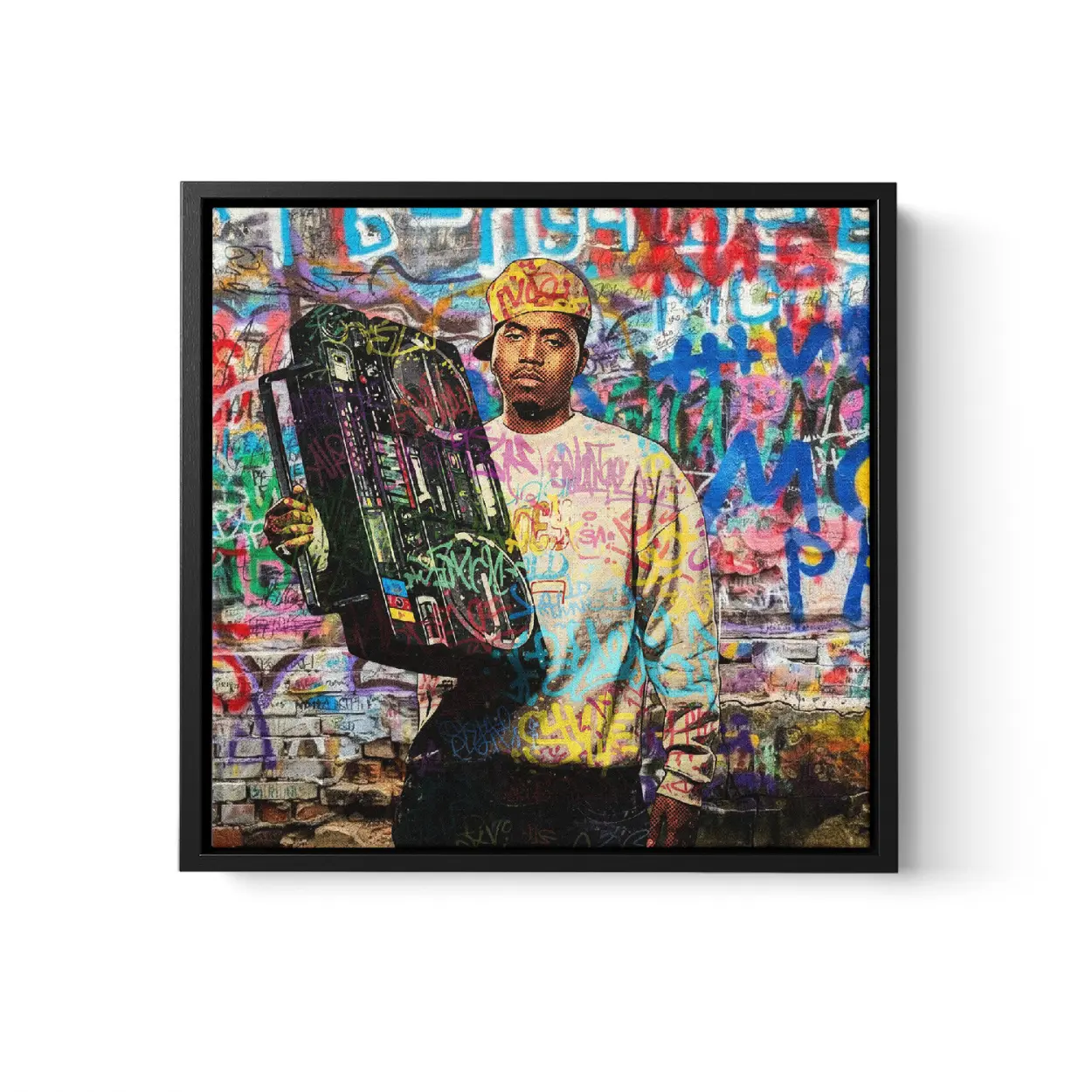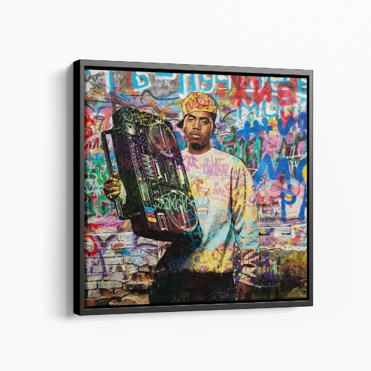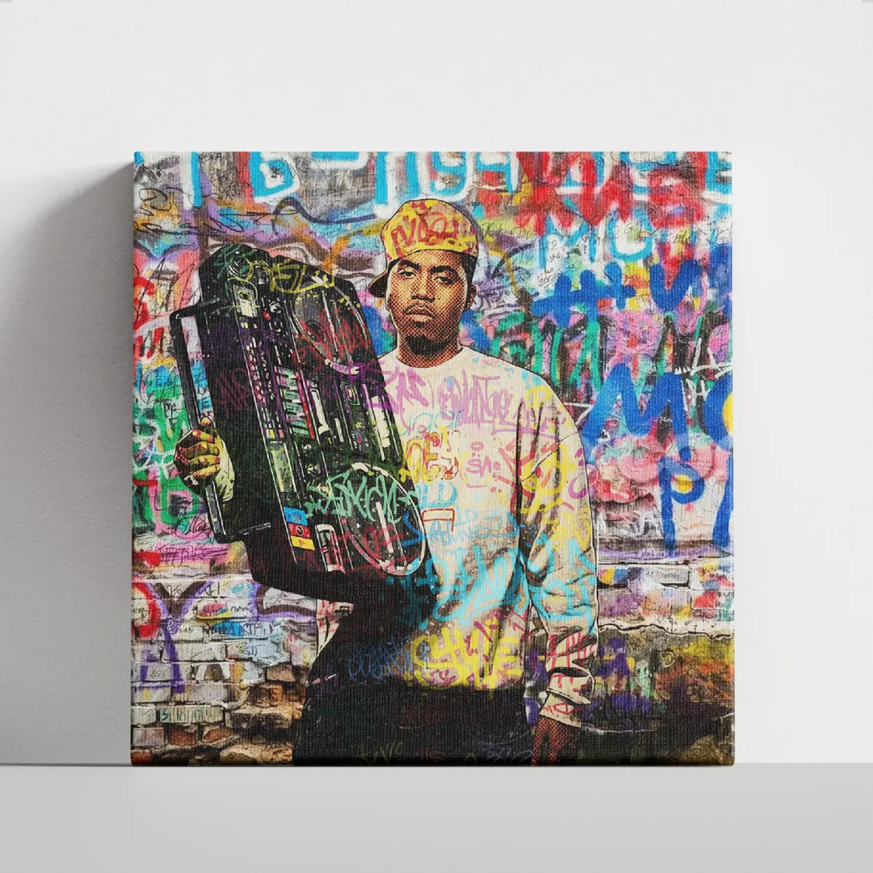NAS King of NY Art – Ready to Hang HD Canvas – Hip Hop Legend Decor Original Illmatic Boombox Art – Ready to Hang Urban Street Art