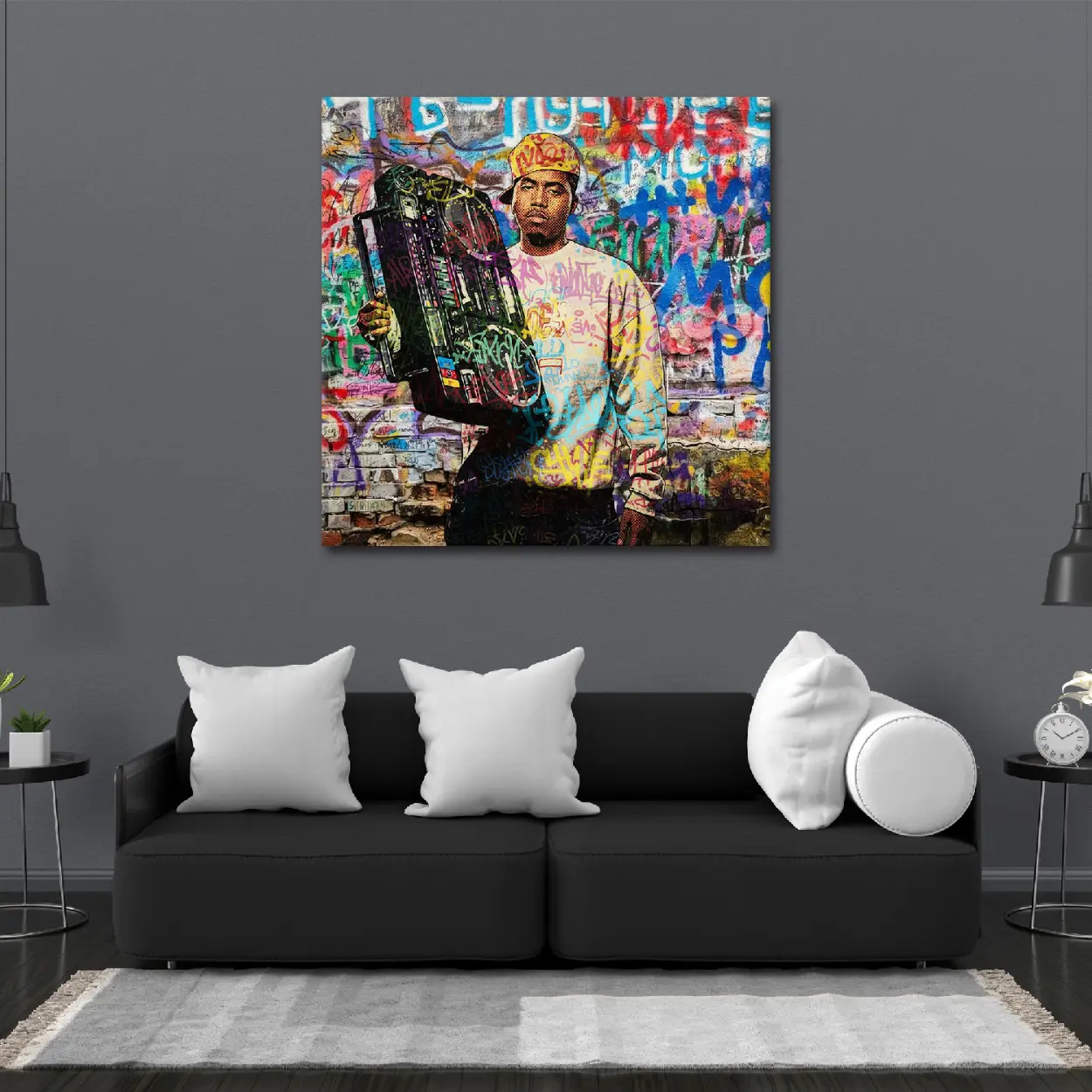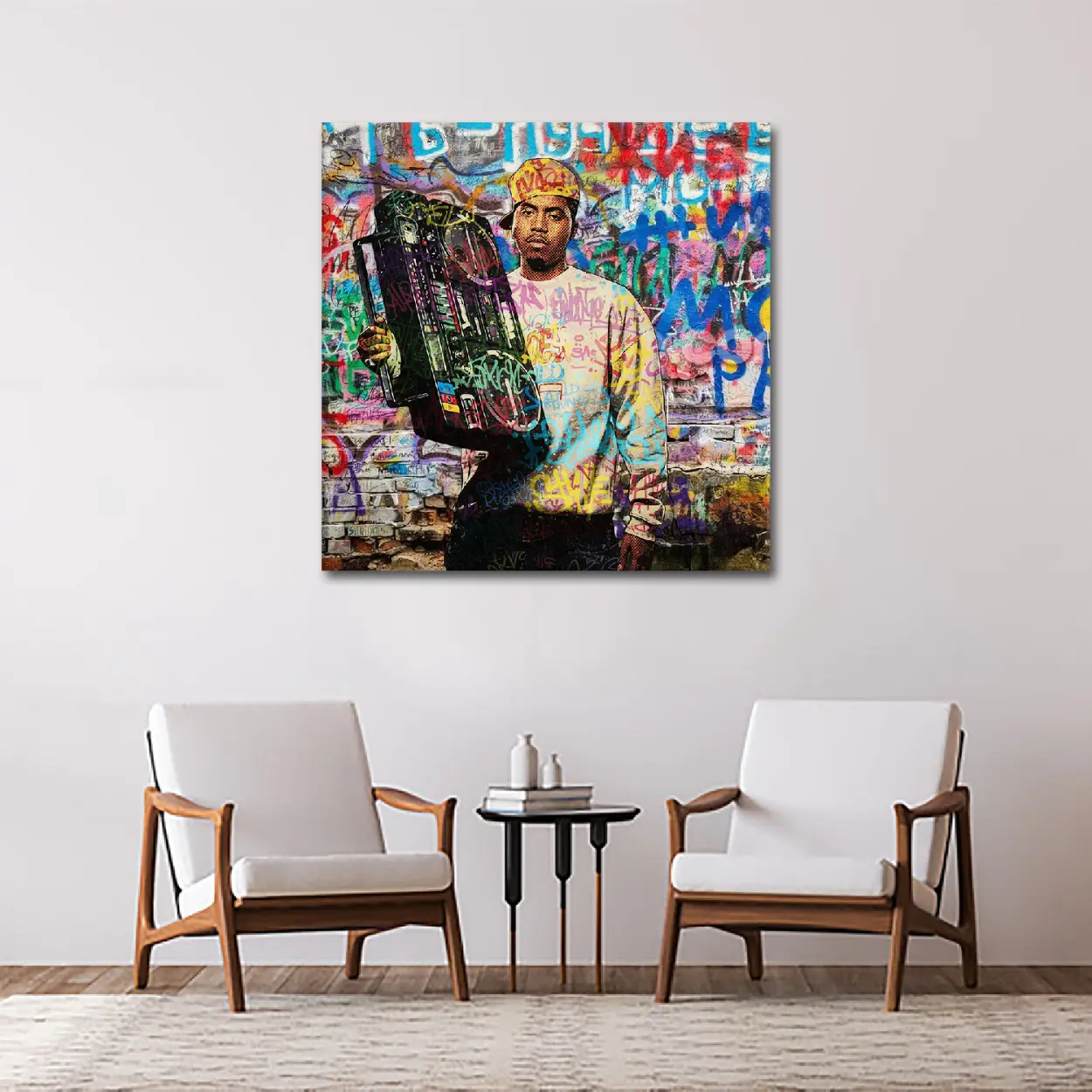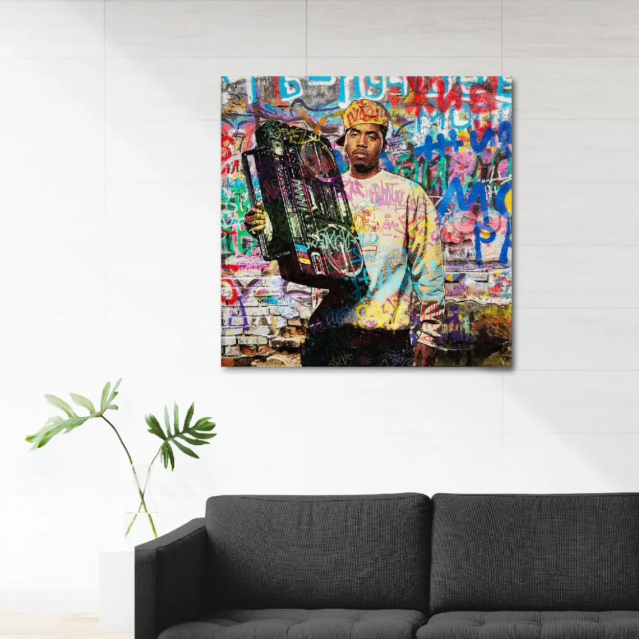 NAS King of NY Art – Ready to Hang HD Canvas – Hip Hop Legend Decor Original Illmatic Boombox Art – Ready to Hang Urban Street Art