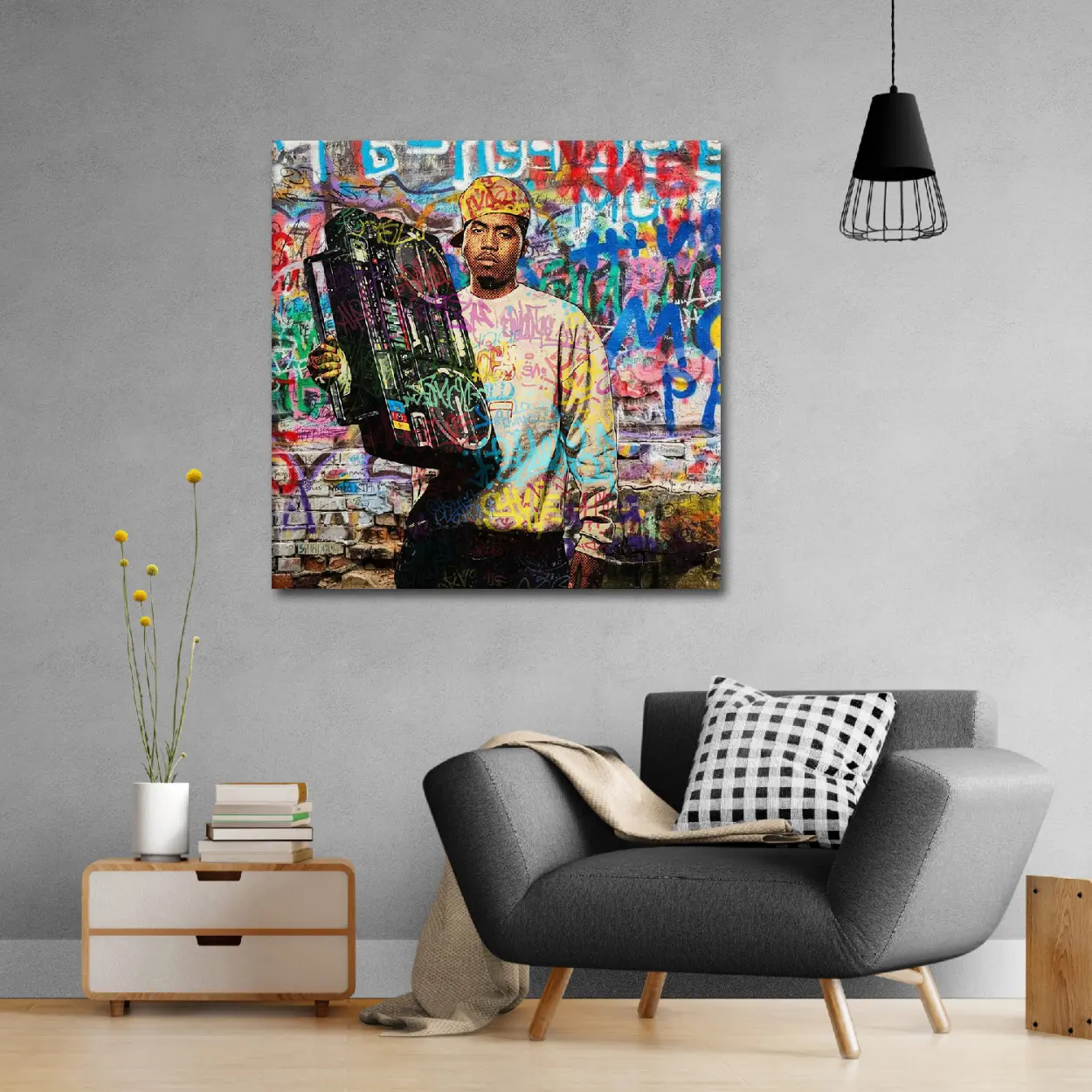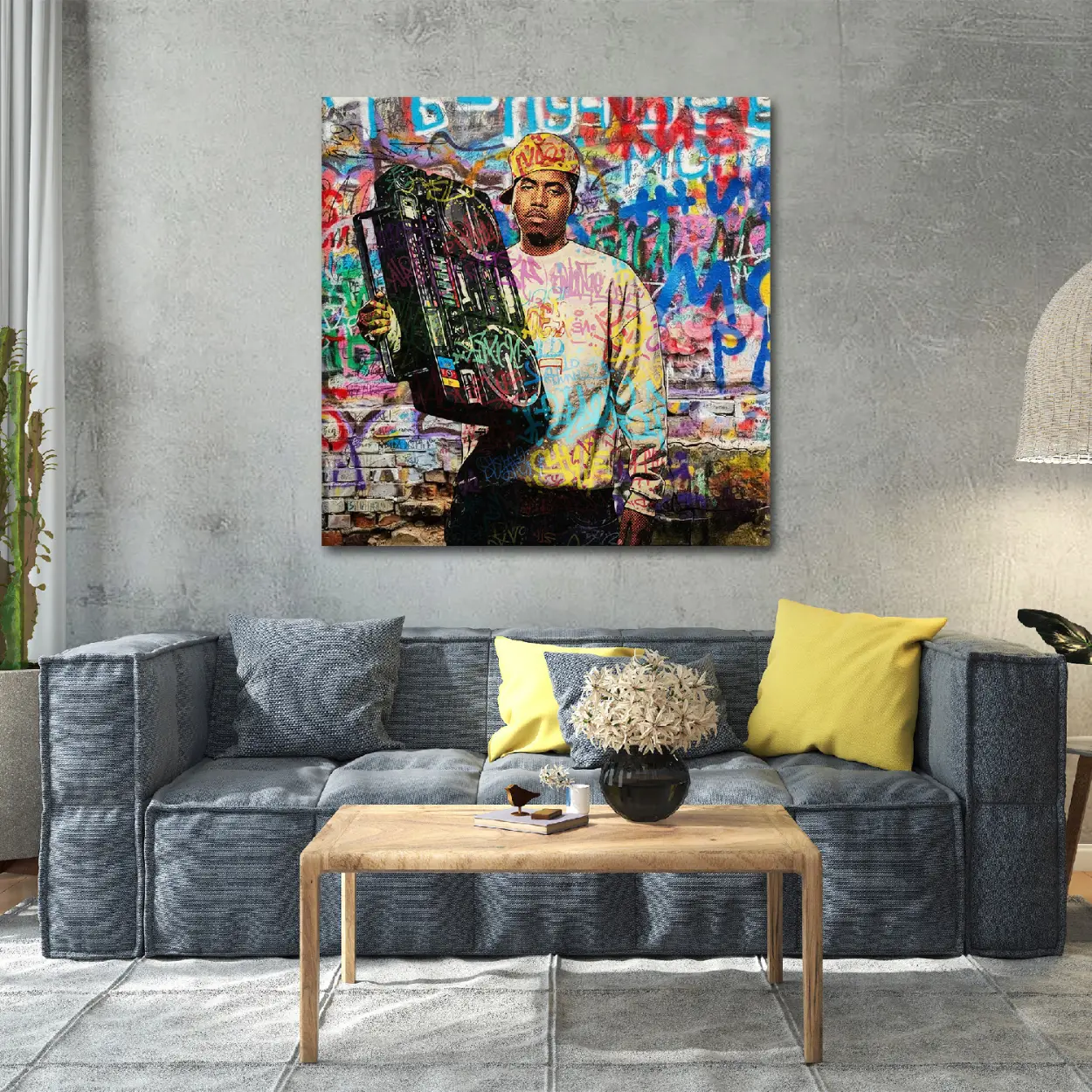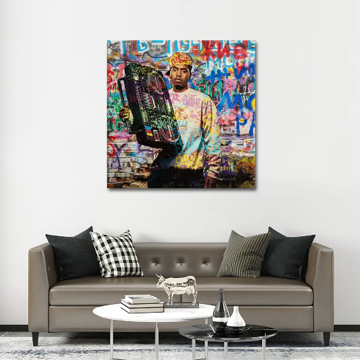 Perfect for hip hop heads, NYC culture enthusiasts, music studios, and modern urban wall decor.