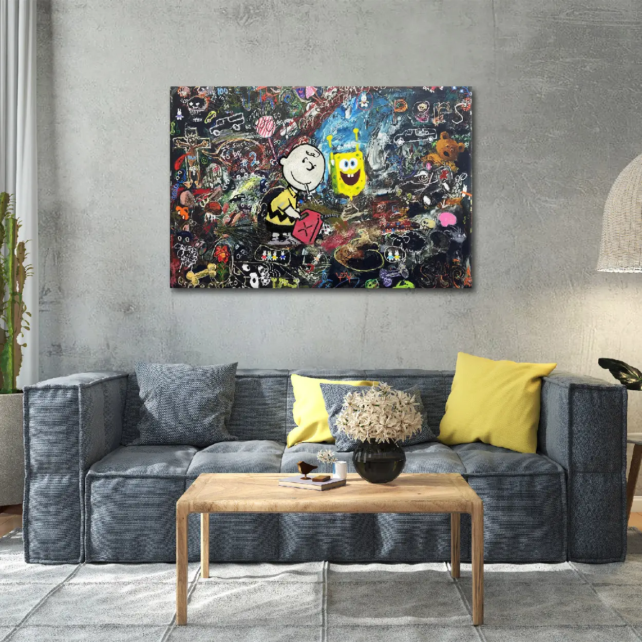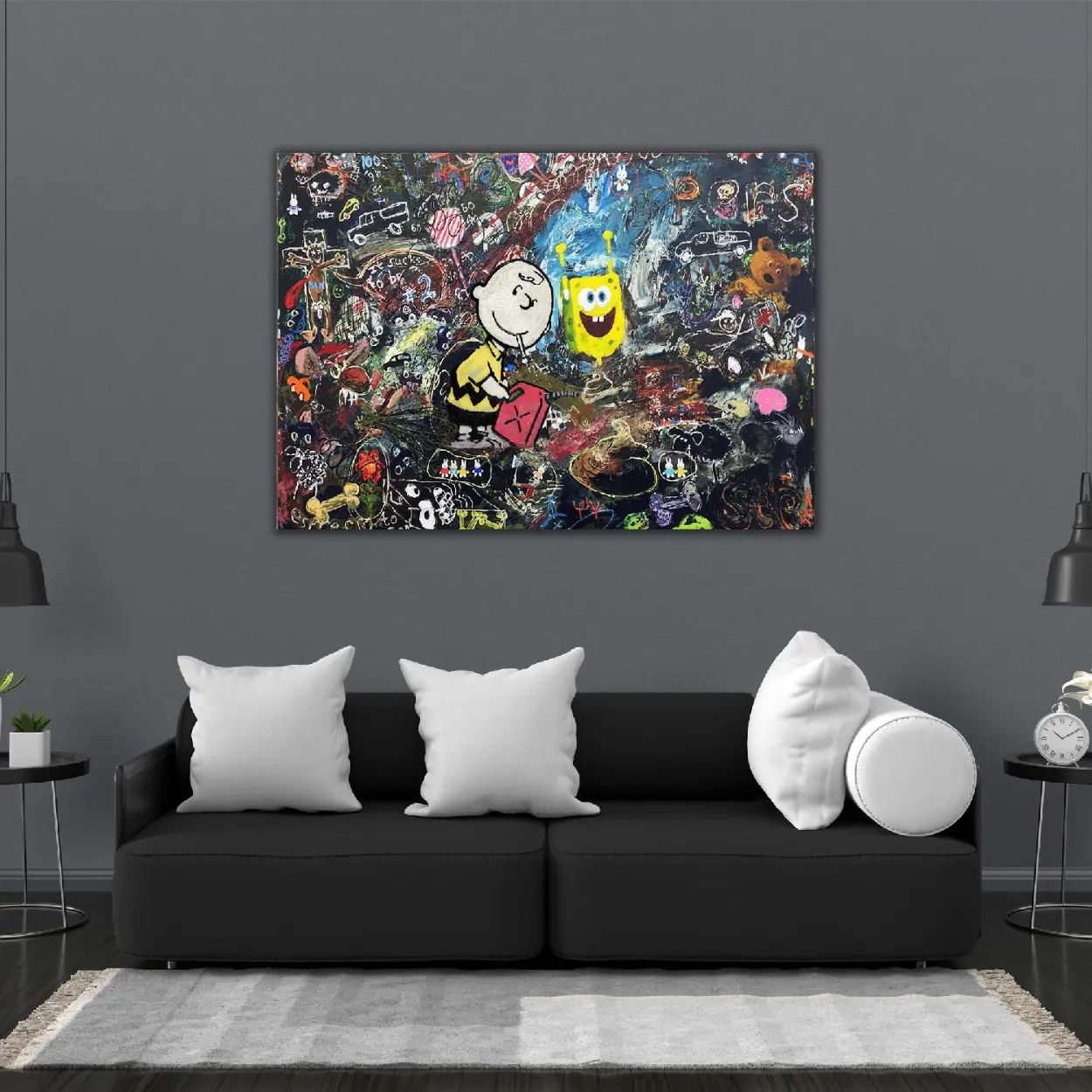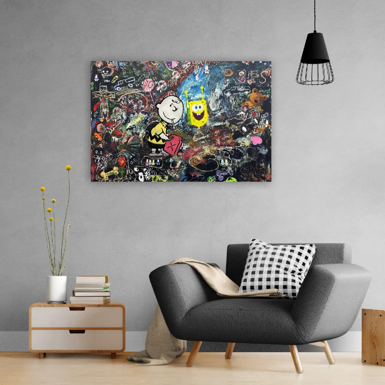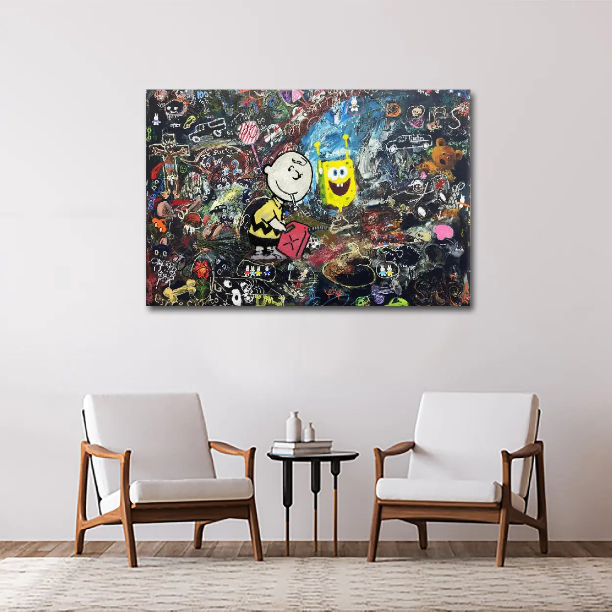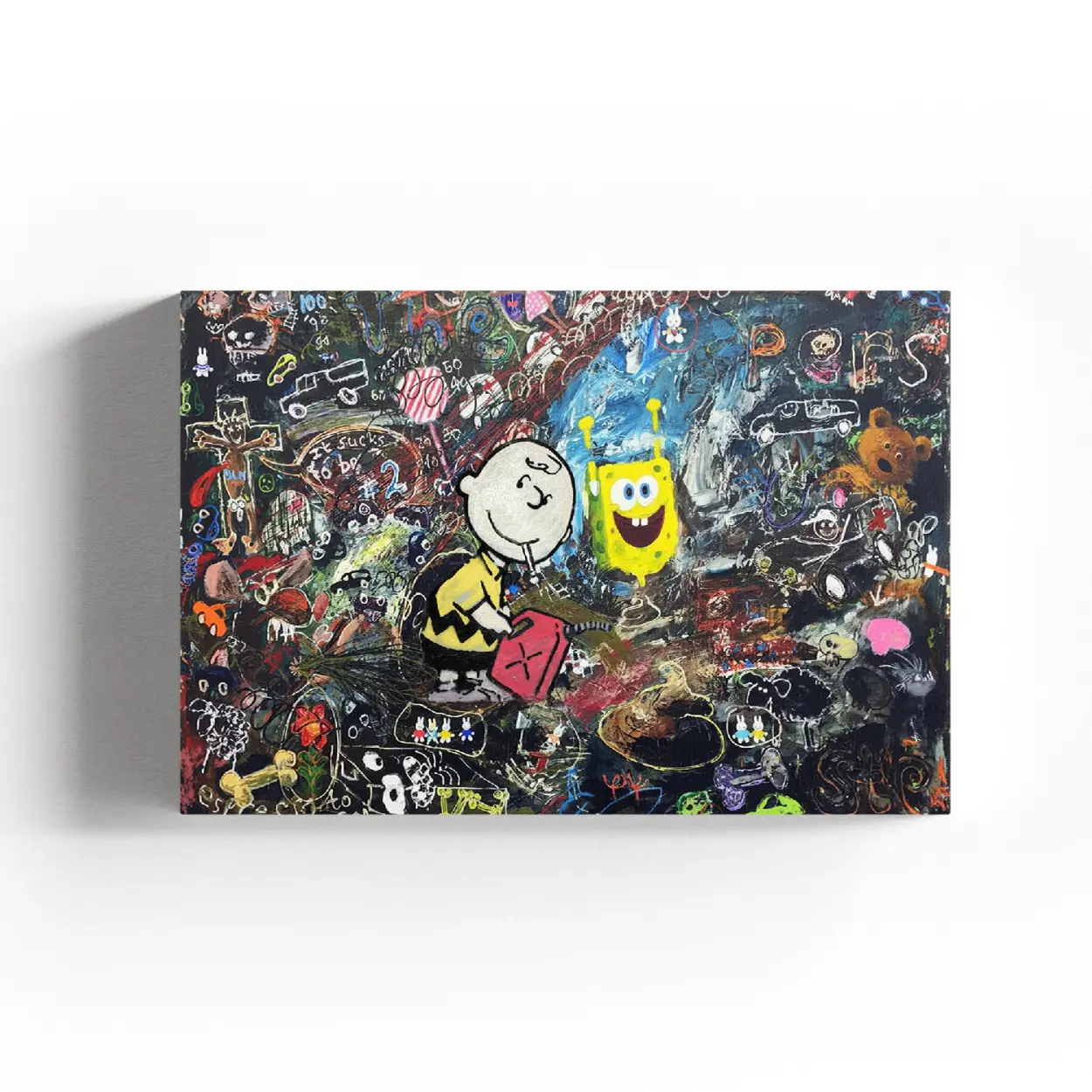 SpongeBob & Charlie Brown Graffiti Canvas Art – Pop Culture Mashup
